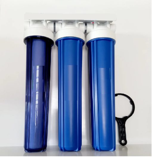 - 3 cốc lọc thô 20 inch: 2 xanh và 1 tím trong suốt